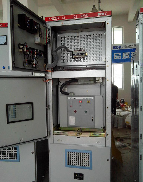 KYN28(GZS)型戶內(nèi)金屬鎧裝抽出式開關(guān)設(shè)備(以下簡稱開關(guān)設(shè)備)。該開關(guān)設(shè)備系3-10KV三相交流50Hz單母線分段系統(tǒng)的成套配電裝置。主要用于發(fā)電廠、中小型發(fā)電機(jī)送電、工礦企事業(yè)配電以及電業(yè)系統(tǒng)的二次變電所的受電、送電及大型高壓電動(dòng)機(jī)起動(dòng)等,實(shí)行控制保護(hù)、監(jiān)測之用。具有防止帶負(fù)荷推拉斷路器手車、防止誤分合斷路器、防止接地開關(guān)處在閉合位置時(shí)關(guān)合斷路器、防止誤入帶電隔室、防止在帶電時(shí)誤合接地開關(guān)的聯(lián)鎖功能,既可配用VS1真空斷路器,也可配用ABB公司的VD4真空斷路器,是一種性能優(yōu)越的配電裝置。